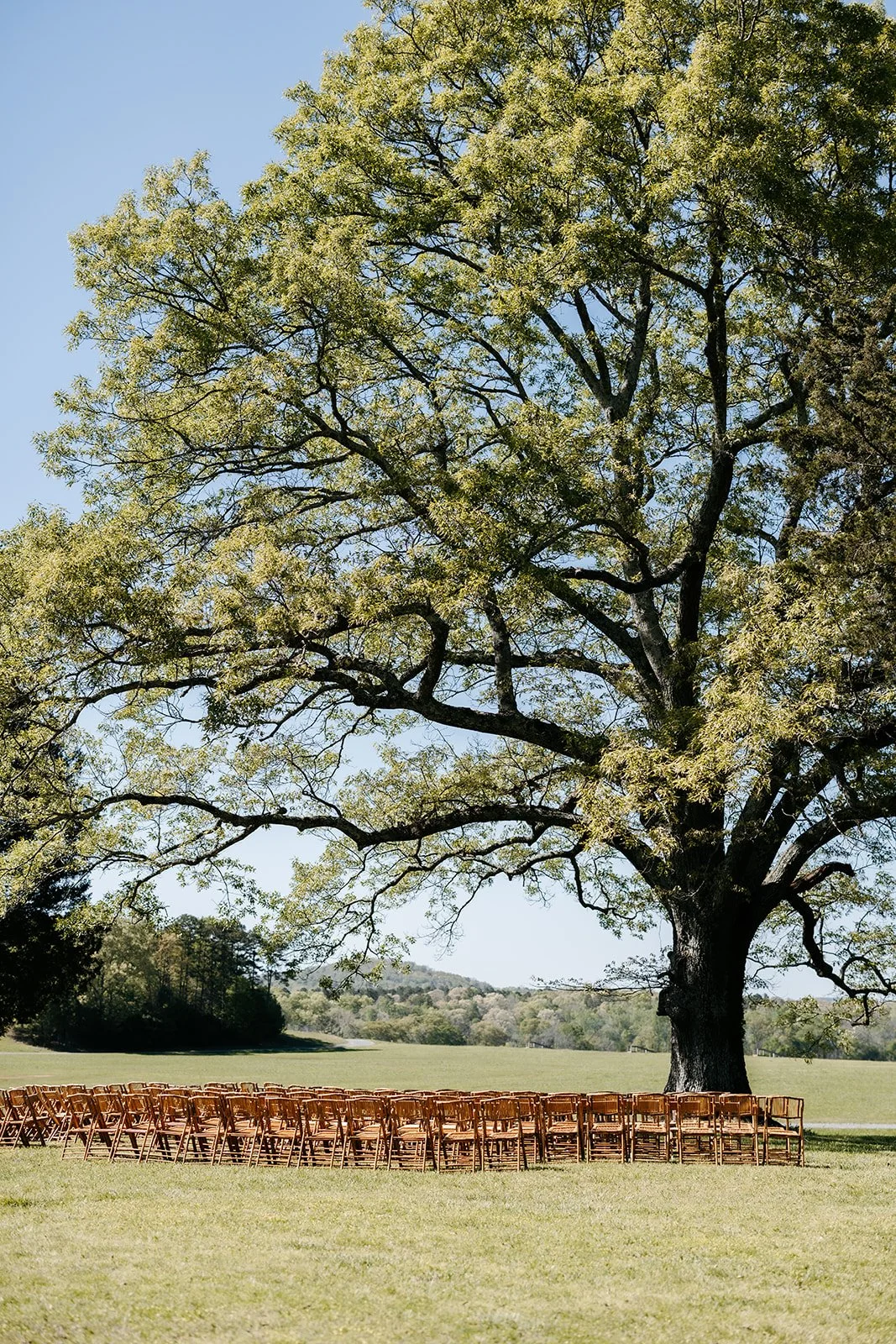 Couples can take their vows beneath an Old Oak Tree overlooking a vista and the surrounding Appalachian foothills for a larger celebration.
